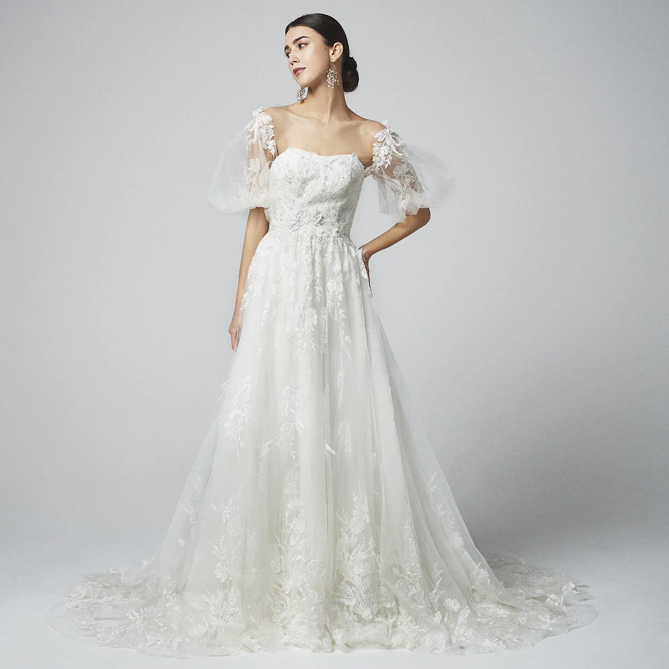 提携のドレスショップにてお選びください。